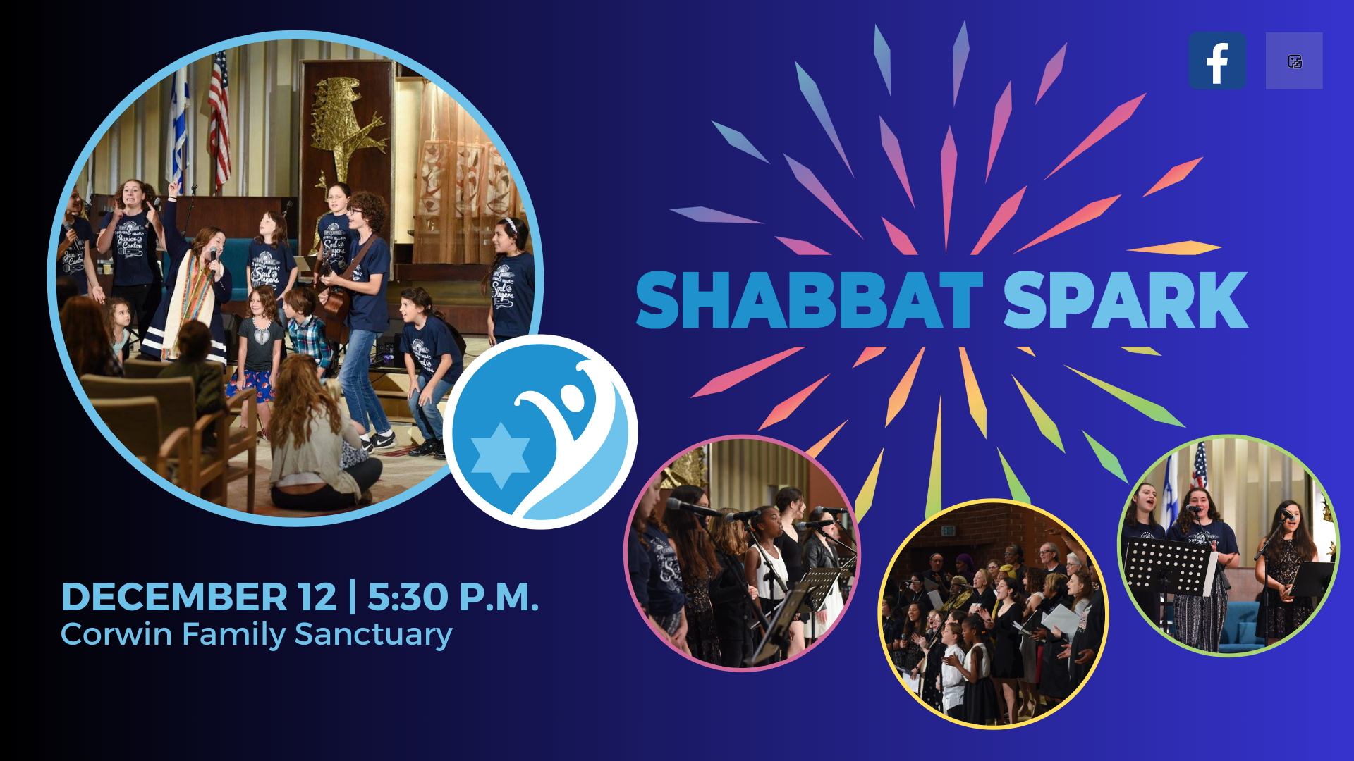 Join us for this family friendly Shabbat service at 6:15 p.m. You can RSVP for the 5:30 p.m. dinner at tebh.org/sparkdinner. |