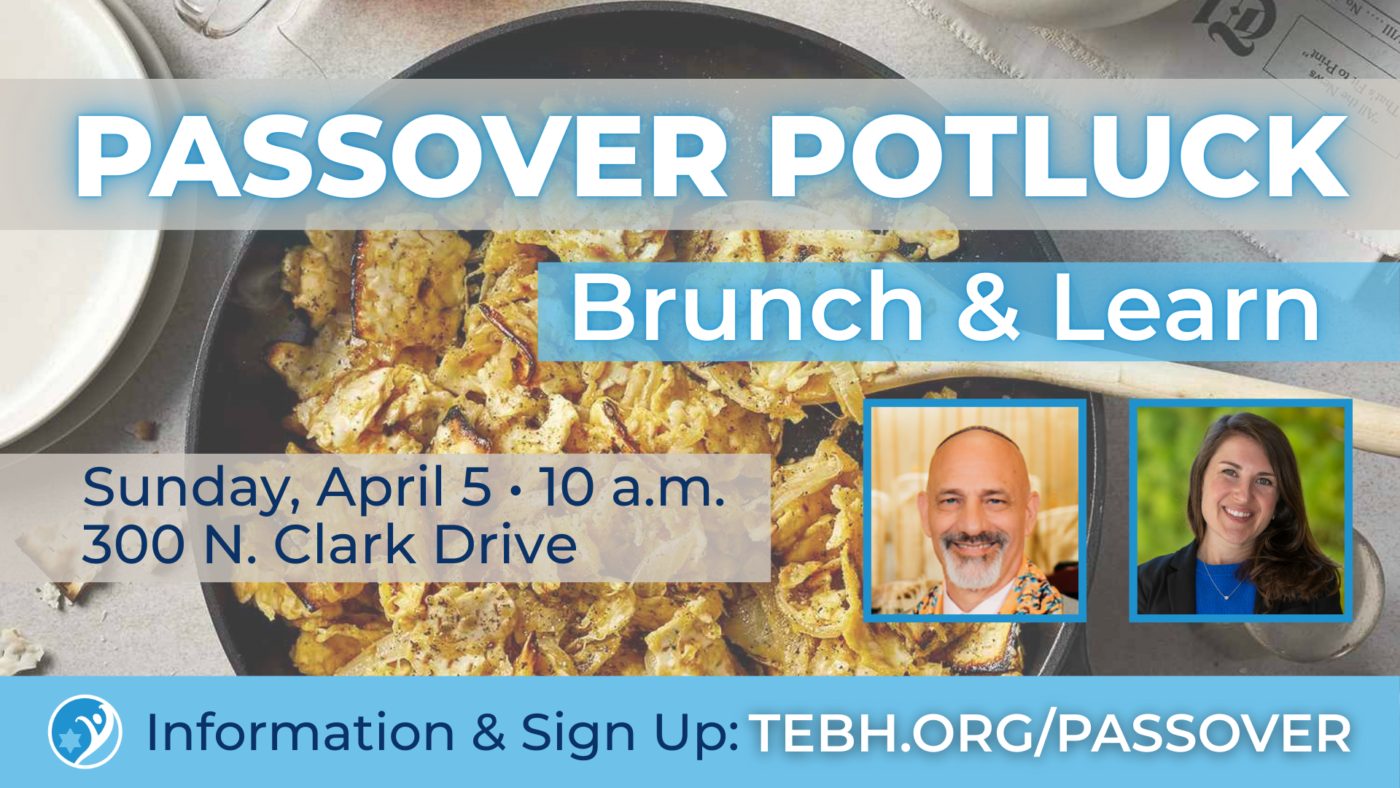 Join Rabbi Aaron and Rabbi Alban for a Passover Potluck Brunch & Learn as we explore the Omer, set spiritual intentions for the journey from Passover to Shavuot, and enjoy a festive brunch together!